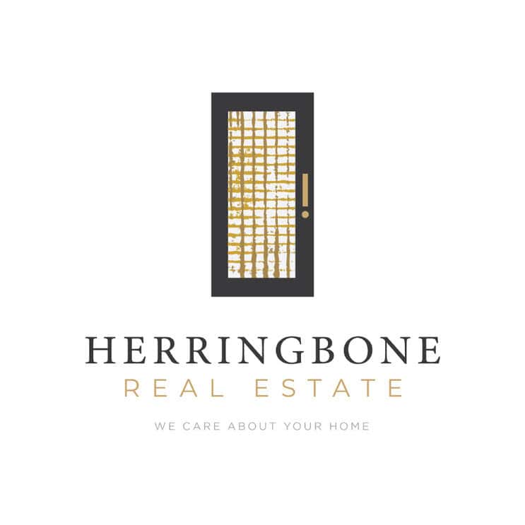 The Herringbone Door Logo stands out with its tastefully designed door adorned with an intricate gold herringbone pattern. It effortlessly embodies the essence of a stylish yet welcoming home, making it ideal for those who value luxury and warmth equally. The black outline of the door provides a sleek contrast to the golden herringbone, adding depth to the overall design. Moreover, the elegant typeface used for the brand name “Herringbone Real Estate” complements the image, enhancing its premium look.