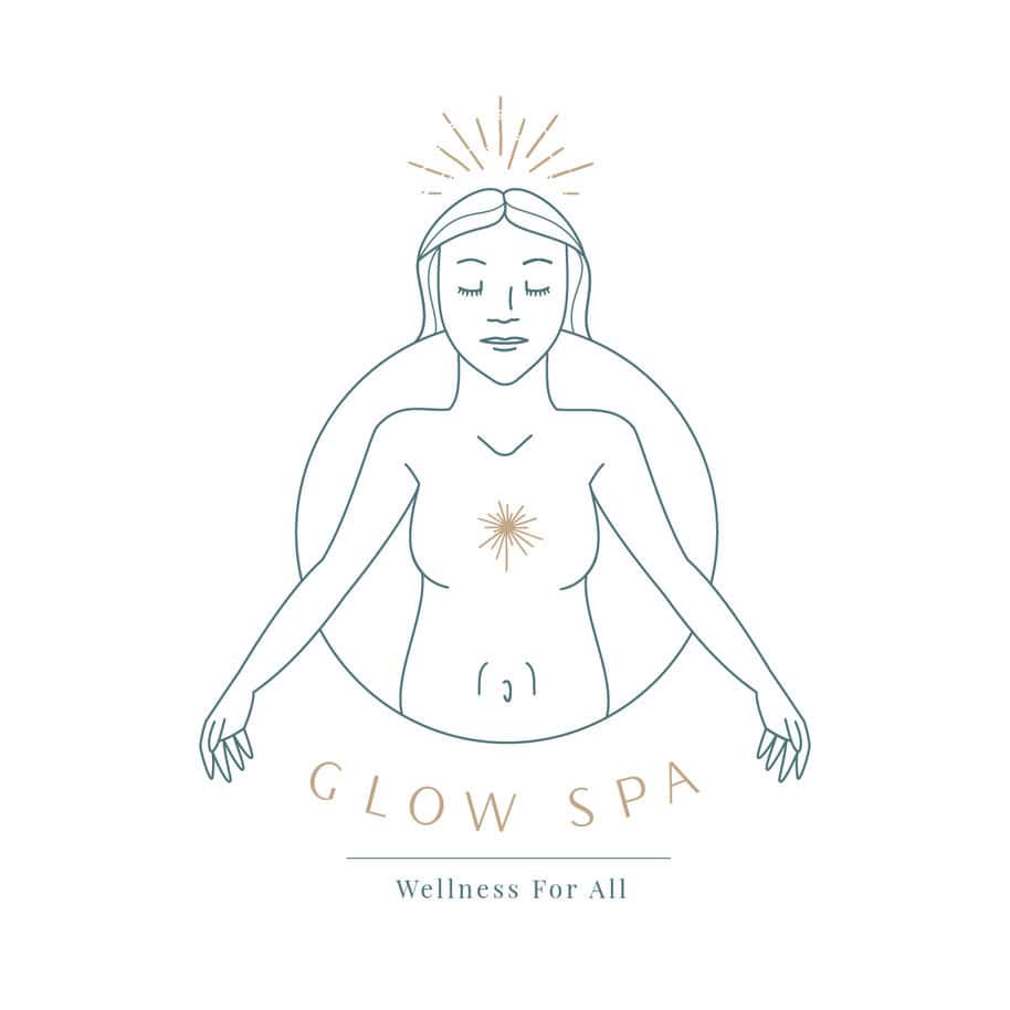 The blue and tan colors are carefully chosen to invoke calmness and warmth, resonating with the peaceful and nurturing essence of a wellness center or a self-care brand. The soft hues and gentle curvature of the figure provide a welcoming and inclusive feel, suggesting a space where all are invited to seek harmony and wellness.